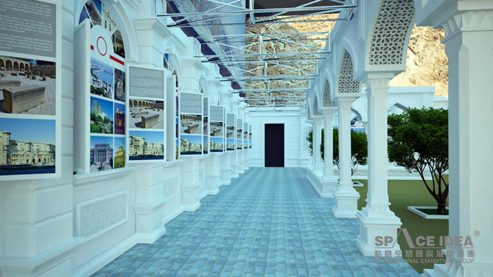 通過對主題的理解和吸收,點意空間對于阿塞拜疆館的設計有了自己的理念,即再現“絲綢之路”,這也成為了阿塞拜疆館的亮點。展館生動再現了古代阿塞拜疆人在偉大的“絲綢之路”上運輸東方和西方的珍寶、傳遞信息、傳播知識和文化的情景,并展示新千年阿塞拜疆重建“絲綢之路”的雄心。展館講述了阿塞拜疆城鎮的現狀,揭示了阿塞拜疆民族精神的基礎:與世界各民族合作,尊重各自的歷史、文化和信仰。