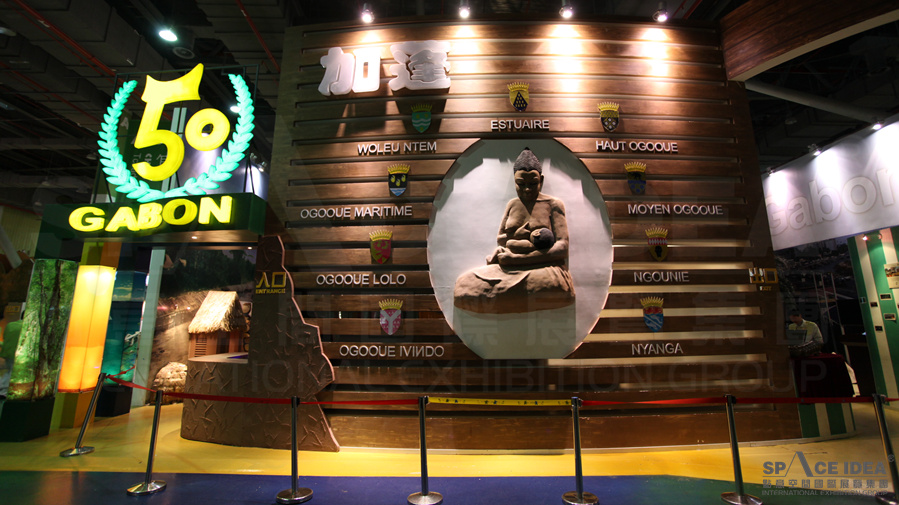 The theme of Gabon Pavilion is interaction between city and countryside. At the entrance of the pavilion, the unique red earthen walls and wooden bars in Africa stand out naturally, decorated with relief sculptures of Gabon's famous domestic sculptures and the symbols of the provinces. The museum is divided into three exhibition areas: "rural civilization", "urban civilization" and "natural forest resources", shows the concept of the complete integration of urban and rural: we come from the countryside to the city, find ourselves in the city, realize ourselves, and finally return to the countryside. The exhibition area of "rural civilization" shows the rural life and rural civilization of Gabon through intuitive crafts and building models, especially the evolution process of Gabon's traditional living form. The exhibition area of "urban civilization" shows the modern city features through projection and multimedia video. The "natural forest resources" exhibition area showcases the natural scenery, plant and animal resources, and tourism resources of Gabon.