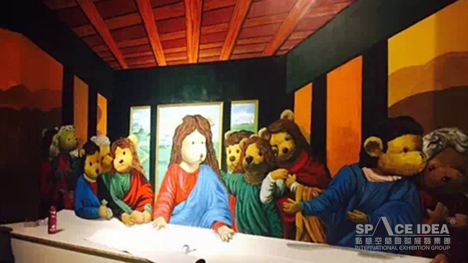 第二個展廳一邊是泰迪熊3D壁畫,一邊是按照世界珍惜名畫做的立體泰迪名畫,看著很是有趣。
