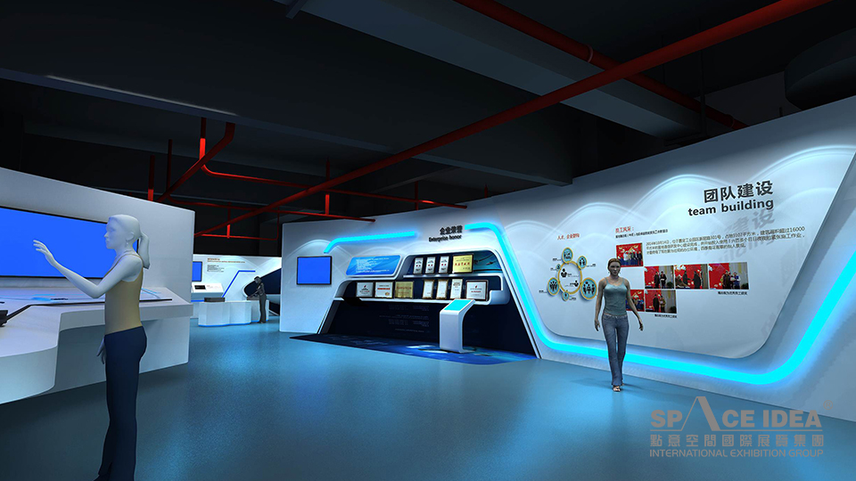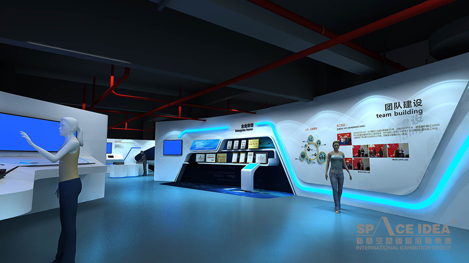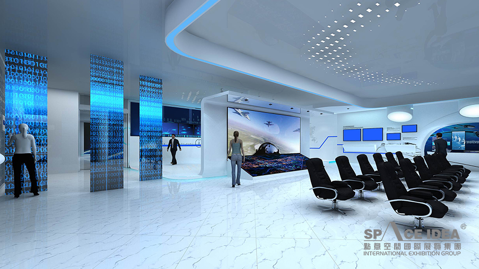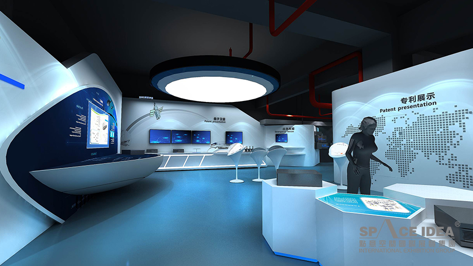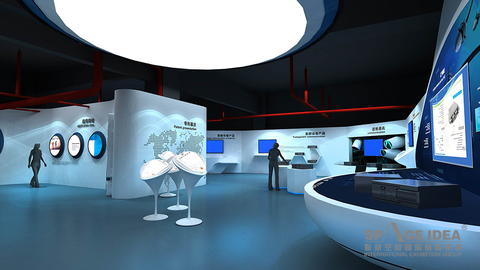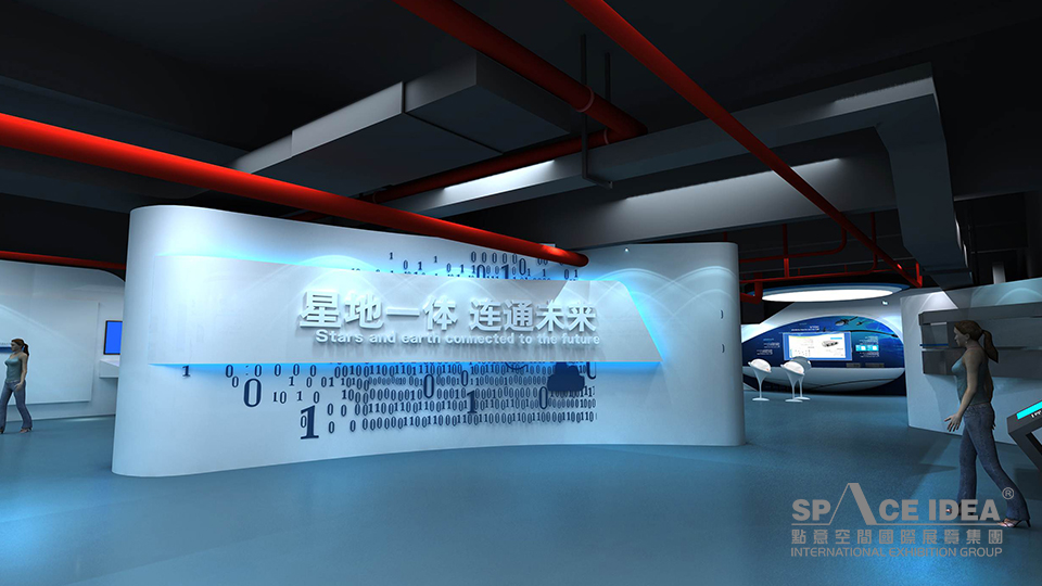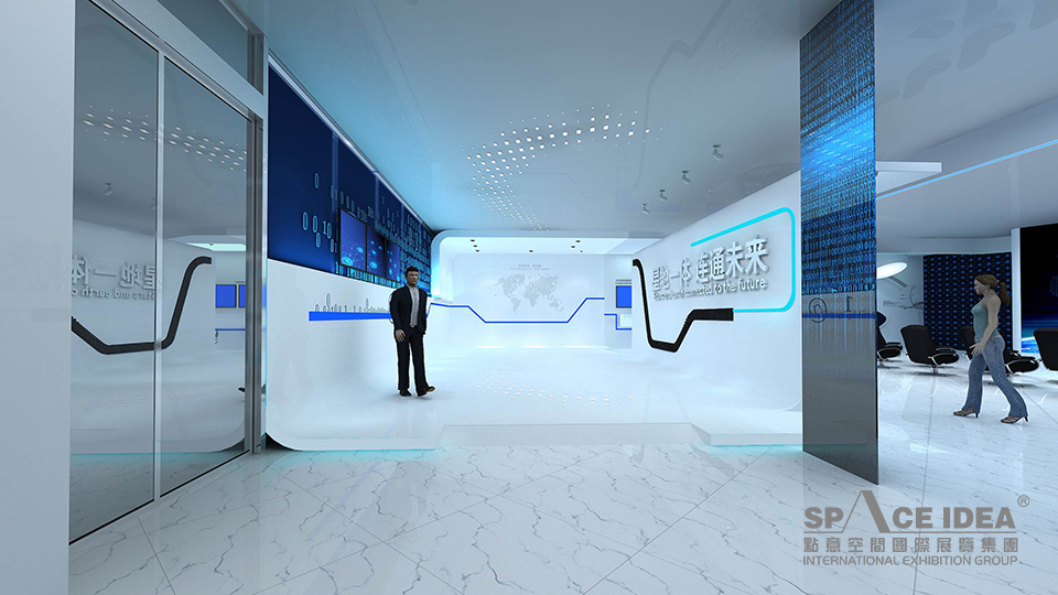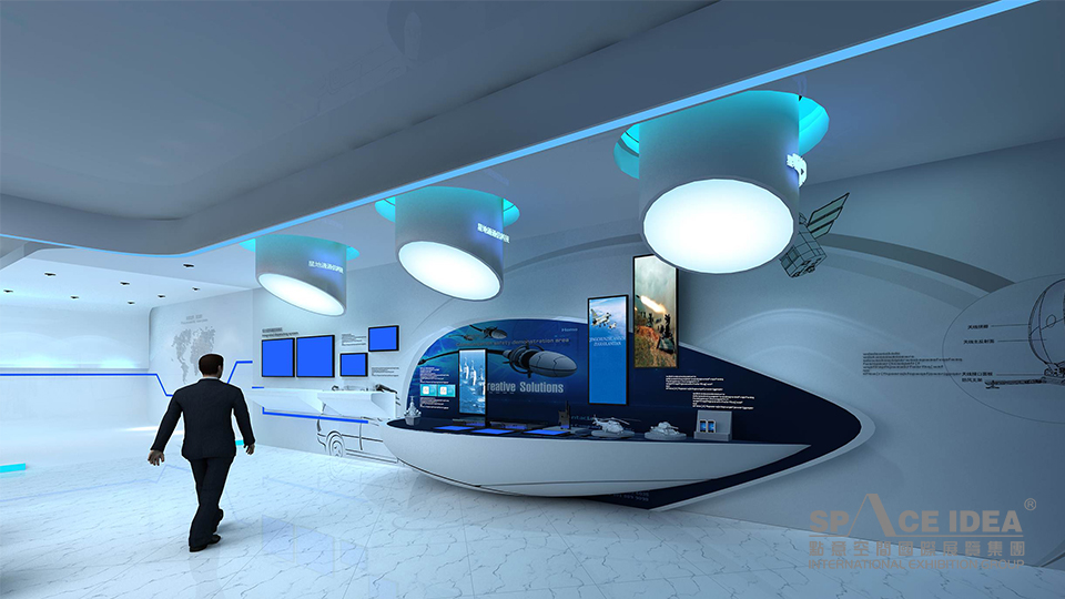 科技感和未來感:展廳以充滿未來感和科技感的白色和藍色為主,呼應(yīng)企業(yè)產(chǎn)品應(yīng)用領(lǐng)域海洋和星空,并以藍色象征夢想和未來;