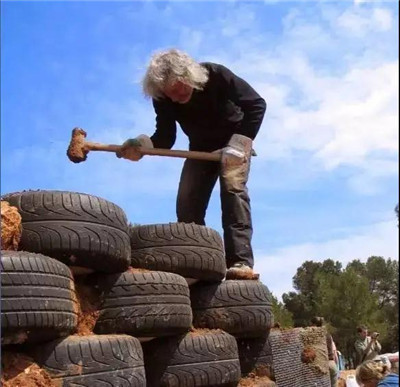 利用輪胎作磚來造墻,輪胎是有彈性的建筑材料,用它做出的墻具有強大的吸熱和制冷功能;