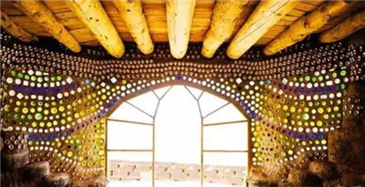 難以想象這樣獨特的住宅是用垃圾建造的,建造材料就是生活中常見的玻璃瓶、易拉罐、橡膠輪胎。